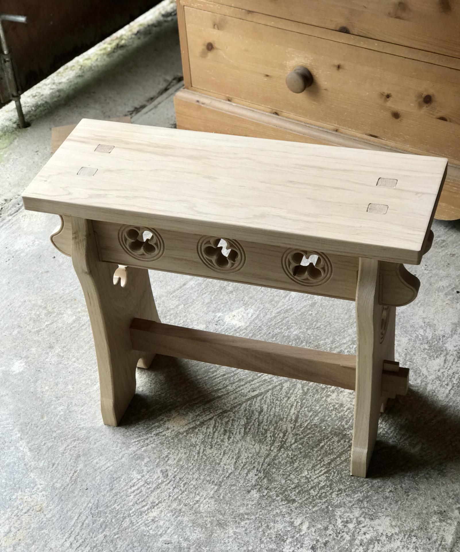 Banc ou escabelle en chêne massif d'inspiration médiévale